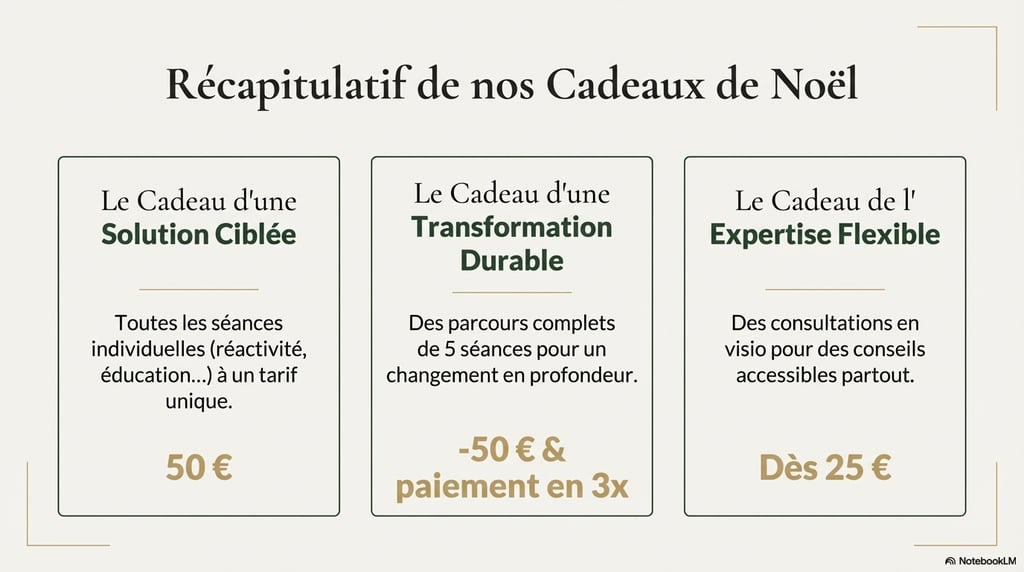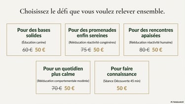Un suivi personnalisé et des conseils précieux. Mon chien est beaucoup plus serein et heureux maintenant.